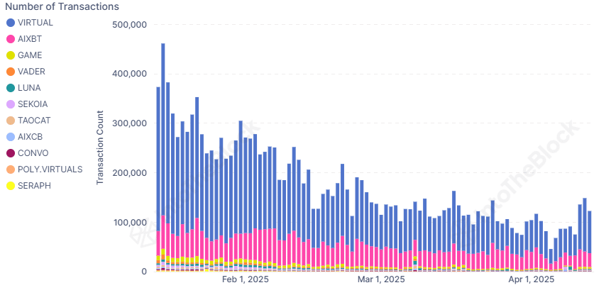 According to analytics firm IntoTheBlock, the ecosystem recovered above 100K transaction count in April, a signal that AI tokens might make a comeback.