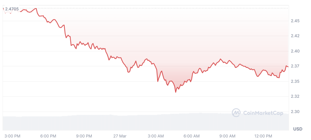 During the past 24 hours, the fourth-largest altcoin recorded a 3.71% downfall. At the time of writing, XRP was trading at $2.37. This drop follows a weekly decline of 4.75%.