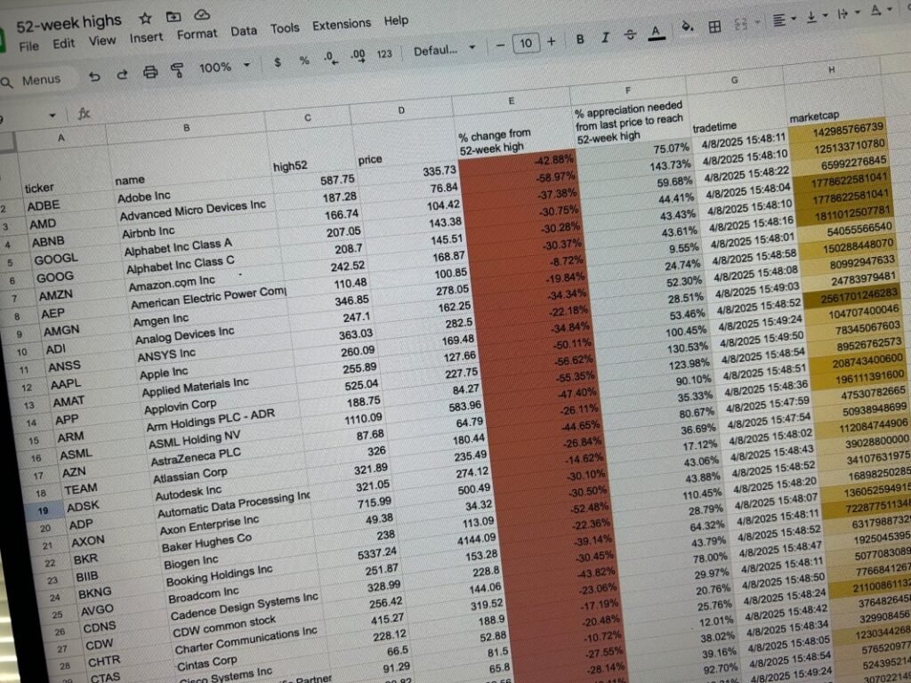 Alternatively, you can copy the “Nasdaq-100” tab and create your own list of stocks to track their changes from their 52-week highs.