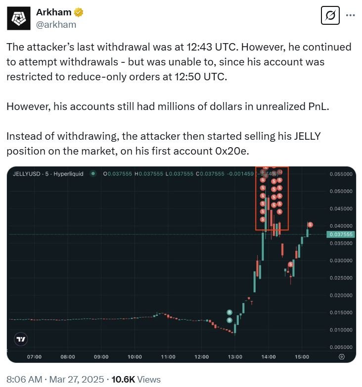 Home»Altcoins»Hyperliquid JELLY ‘exploiter’ could be down $1M, says Arkham