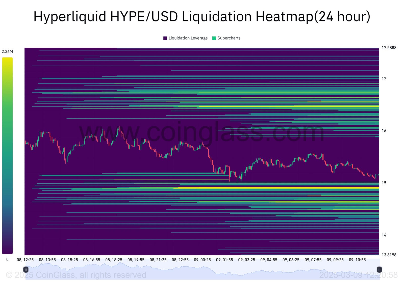 The liquidation heatmap for HYPE revealed that several liquidation clusters are forming around the $15.00 level.