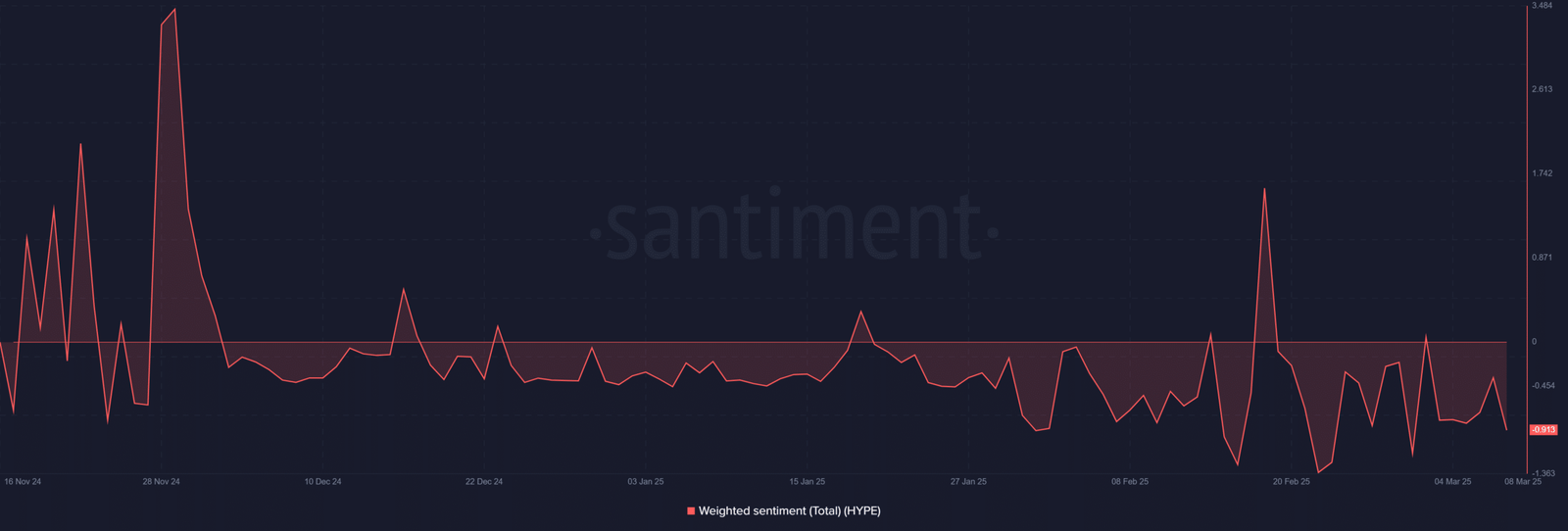 The Weighted Sentiment for HYPE was -0.91 at press time, reflecting a predominantly bearish outlook among market participants.