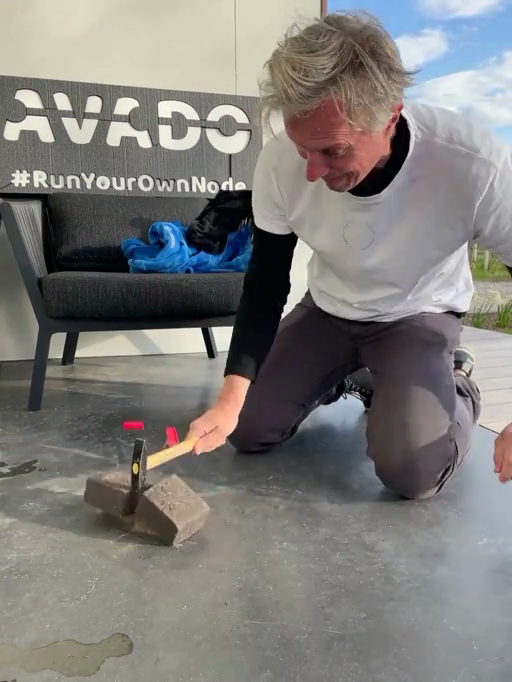 heeckhau.eth and sponnet.eth contributed entropy by video-recording the pouring and fizzing of Belgian beers using a webcam and an AVADO i5 box before destroying the USB flash drive used for live-booting Ubuntu with a hammer.