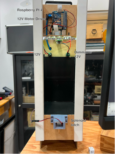 Justin Florentine built a dice tower that could both collect entropy for the ceremony and help determine the outcomes of his table-top games. The dice tower was a sealed box which rolled the dice before collecting them in a sealed chamber in which they were photographed by a Raspberry Pi (and camera). Then computer vision was used to read the dice which were used to determine the success/failure/damage of a given roll while adding the dice values to an internal entropy accumulator. A trapdoor then opened to return the dice to the player. By the end of the game, 1024 bits of entropy had been collected and the SD card used in the Pi was burned until destruction.