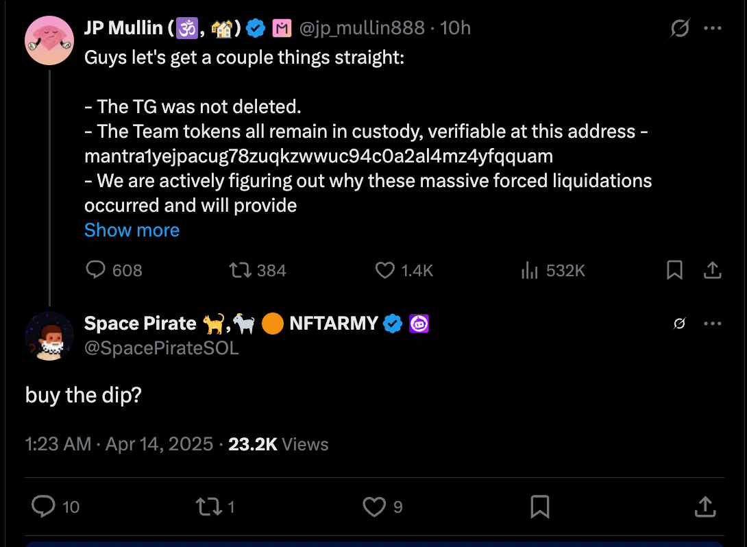 Numerous online commentators claimed the Mantra team, reportedly controlling 90% of the token supply, orchestrated the sell-off due to suspicious OM transfers to centralized exchanges right before the crash.