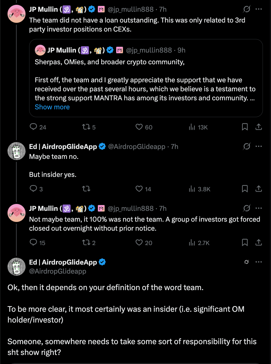 Analyst Ed further alleged that the Mantra team used their OM holdings as collateral to secure high-risk loans on a centralized exchange.