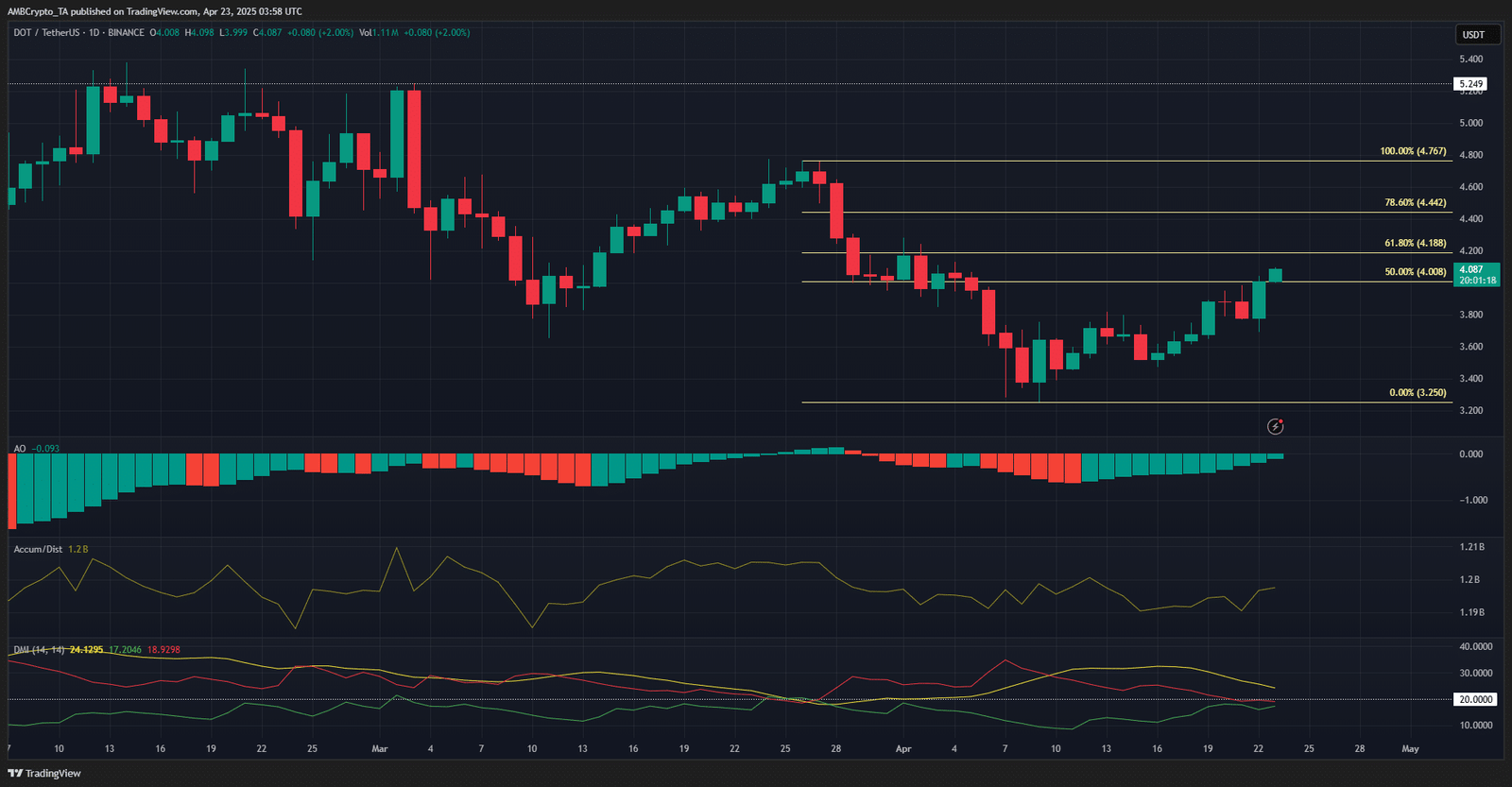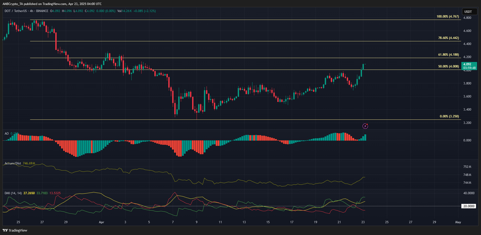 An analysis last week revealed that the $3.8-level was a key level to flip to support. DOT‘s bulls have achieved this since then. Now though, they may have more ambitious plans.