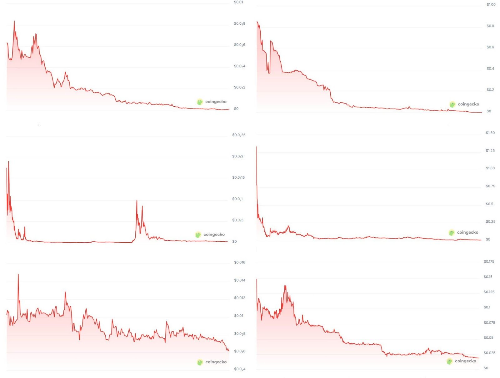 Six projects that worked with market makers under the loan option agreement tanked in price. Source: CoinGecko