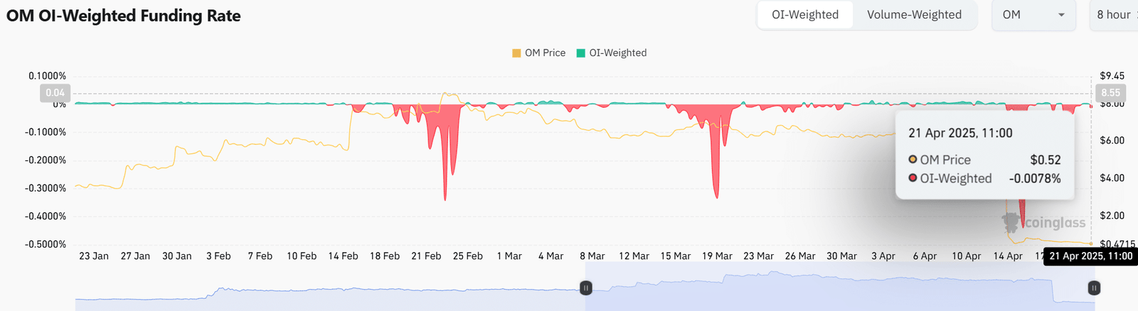While the hike seemed modest, it might hint at a subtle shift in sentiment among deep-pocketed participants. If this trend continues, it could strengthen OM’s base and cushion further downside.