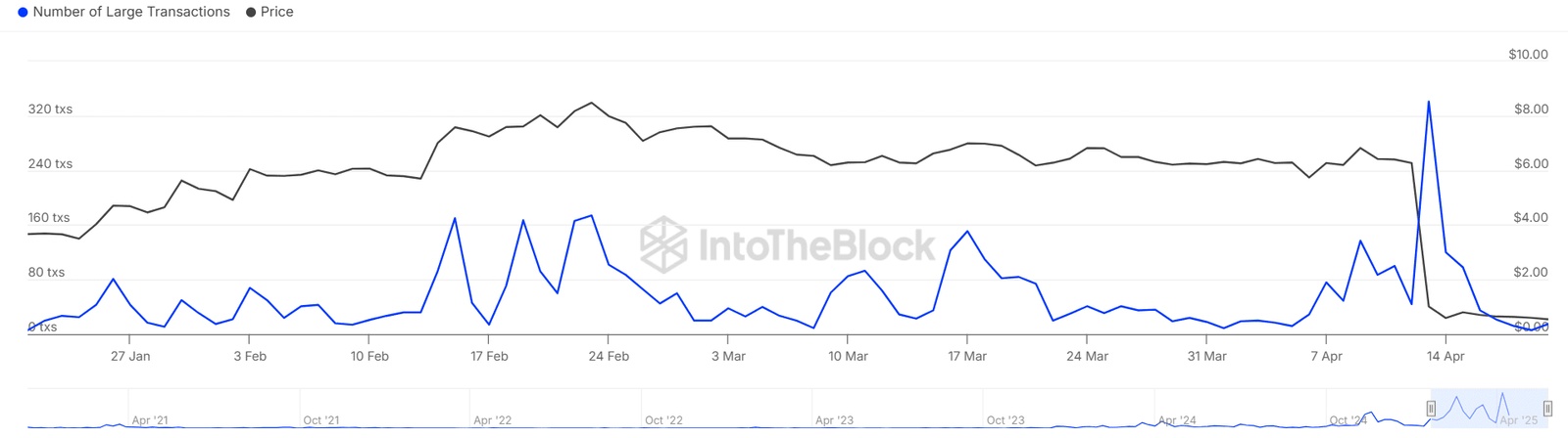 Following the $17 million loss by a major whale, on-chain activity revealed signs of quiet re-entry among large holders. In fact, large transaction volume has ticked up by 2.64%, hinting at early-stage accumulation as opportunistic players take advantage of the steep dip.
