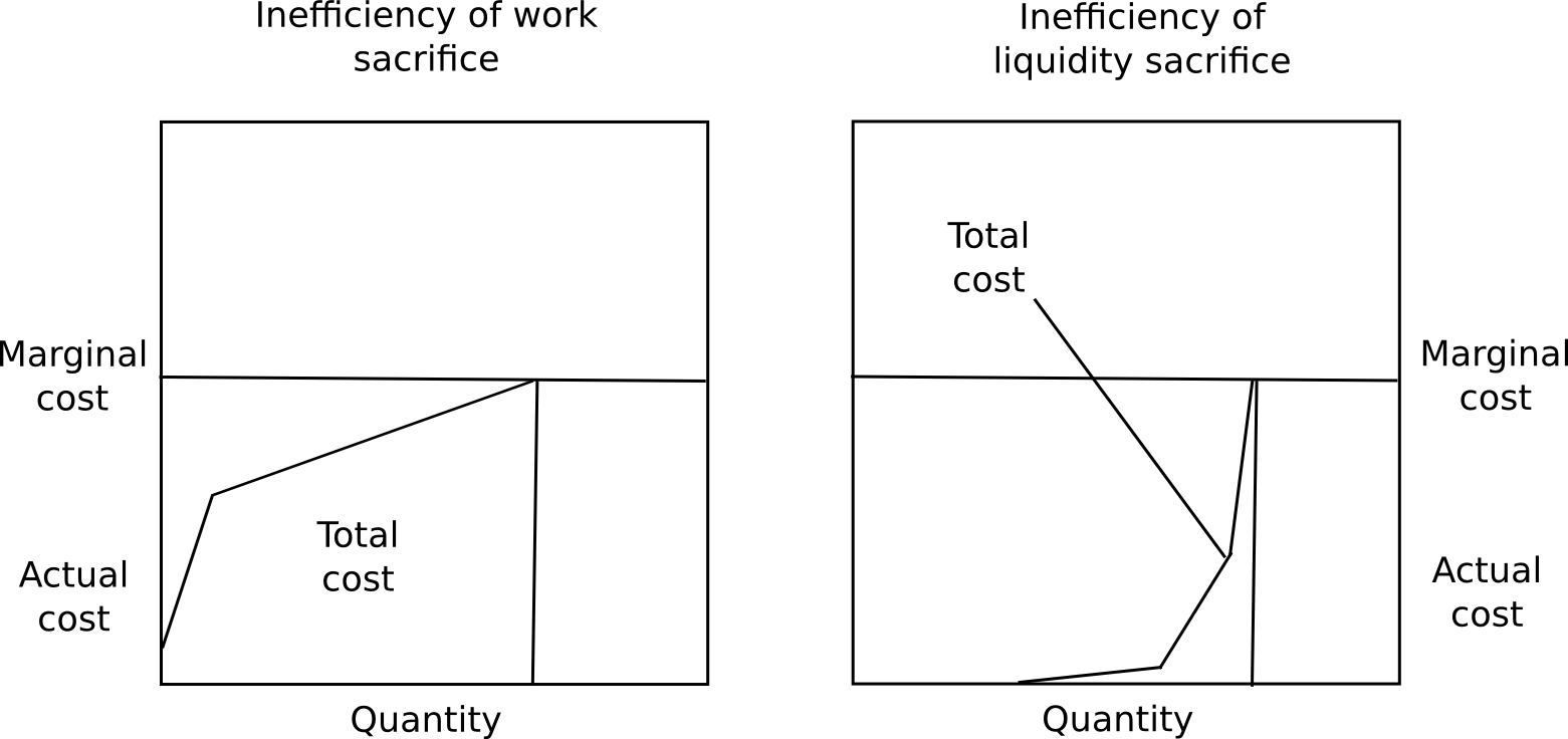 Second, locking up capital is a private cost, but also a public good. The presence of locked up capital means that there is less money supply available for transactional purposes, and so the value of the currency will increase, redistributing the capital to everyone else, creating a social benefit. Third, security deposits are a very safe store of value, so (i) they substitute the use of money as a personal crisis insurance tool, and (ii) many users will be able to take out loans in the same currency collateralized by the security deposit. Finally, because proof of stake can actually take away deposits for misbehaving, and not just rewards, it is capable of achieving a level of security much higher than the level of rewards, whereas in the case of proof of work the level of security can only equal the level of rewards. There is no way for a proof of work protocol to destroy misbehaving miners’ ASICs.