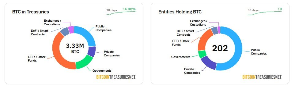 Corporate treasuries are now major Bitcoin holders. Source: Bitcointreasuries.net