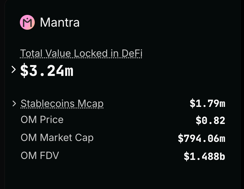 Mantra TVL vs. FDV (in dollar terms). Source: DefiLlama