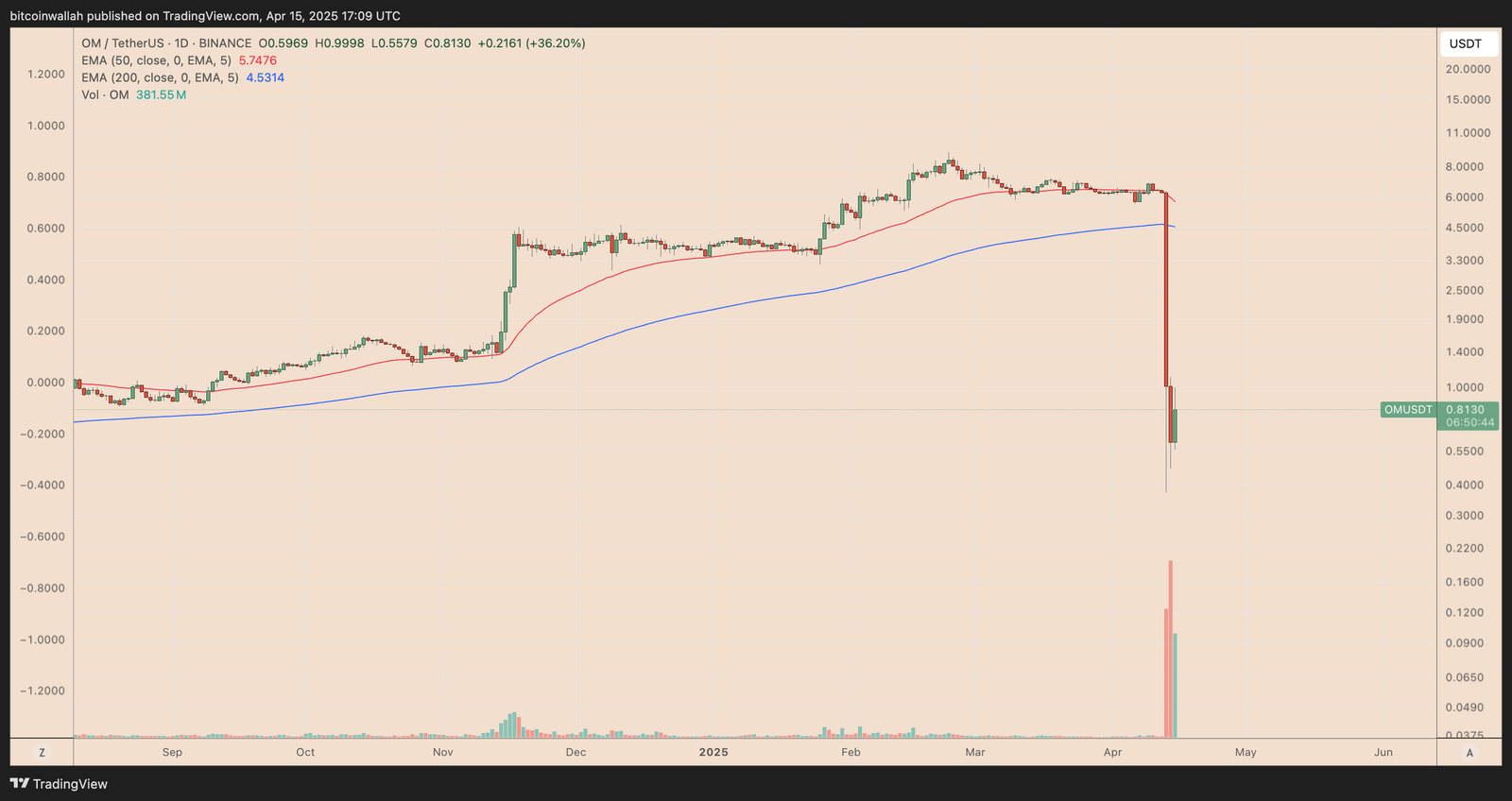 OM/USDT daily price chart. Source: TradingView