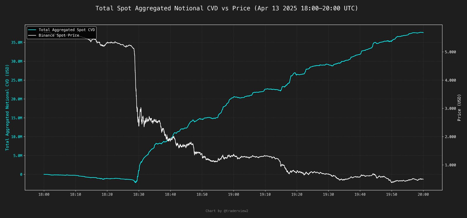 Mantra total aggregated spot CVD vs. Binance spot price. Source: DOM