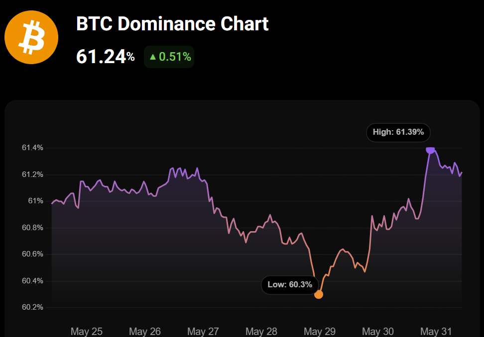 Visualizing Bitcoin dominance, i.e., the ratio of BTC’s market cap to the total market cap of all cryptocurrencies. Source: CoinStats