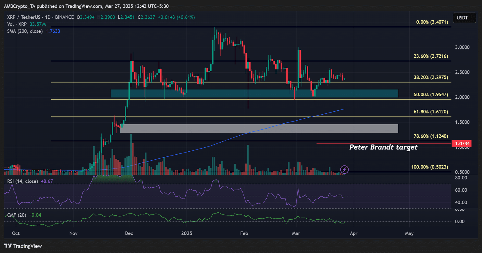 From a price chart perspective, the $2 (cyan) and $1.4 (white) levels were key supports to watch before Brandt’s target.