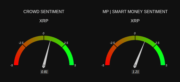 The bearish sentiment against XRP because of its head-and-shoulders pattern worsened due to liquidity flowing out of the market. However, sentiment for XRP pointed toward bullishness. The crowd sentiment reached a value of 0.81 while smart money sentiment stood at 1.21.