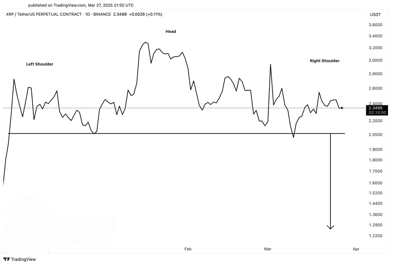 - If XRP can break above $3, it will invalidate the current head-and-shoulders pattern, potentially flipping the outlook bullish.