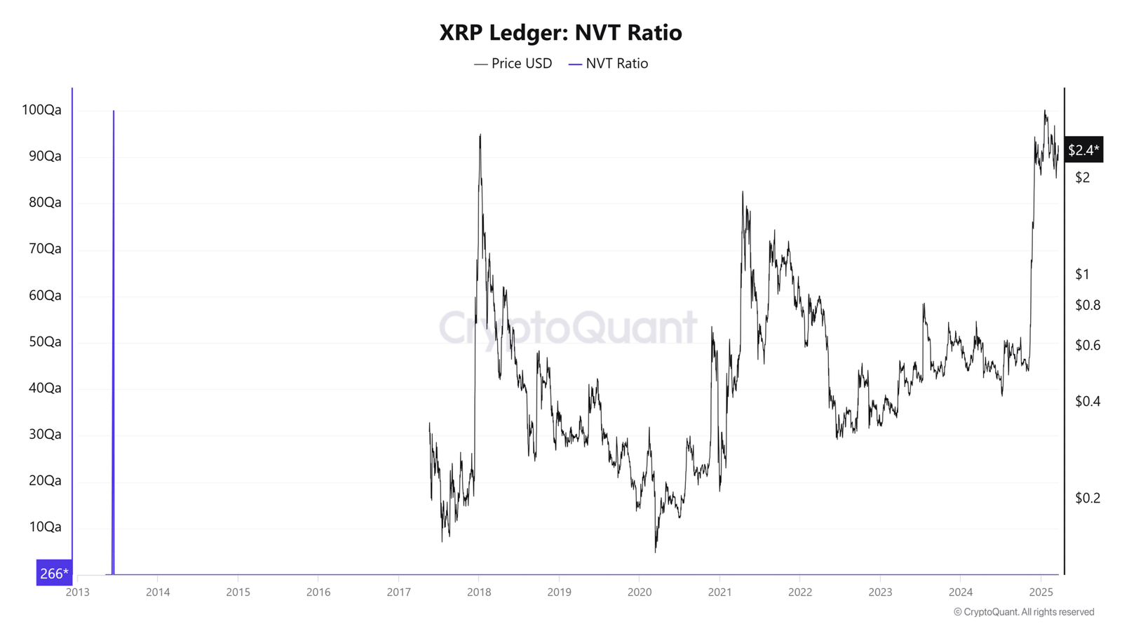 The surge in the NVT ratio raises concerns about XRP’s valuation, potentially signaling that a price pullback might be imminent.