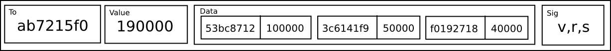 Note that this scheme does have its limits. Although it can arbitrarily magnify the amount of work that can be done with one signature, the amount of data that must be spent registering the recipient, value and message data, and the amount of computational resources that must be spent processing the transactions, still remains the same. The importance of signatures is not to be underestimated; signature verification is likely the most expensive part of blockchain validation, but the efficiency gain from using this kind of mechanism is still limited to perhaps something like a factor of four for plain old sends, and even less for transactions that involve a lot of computation.