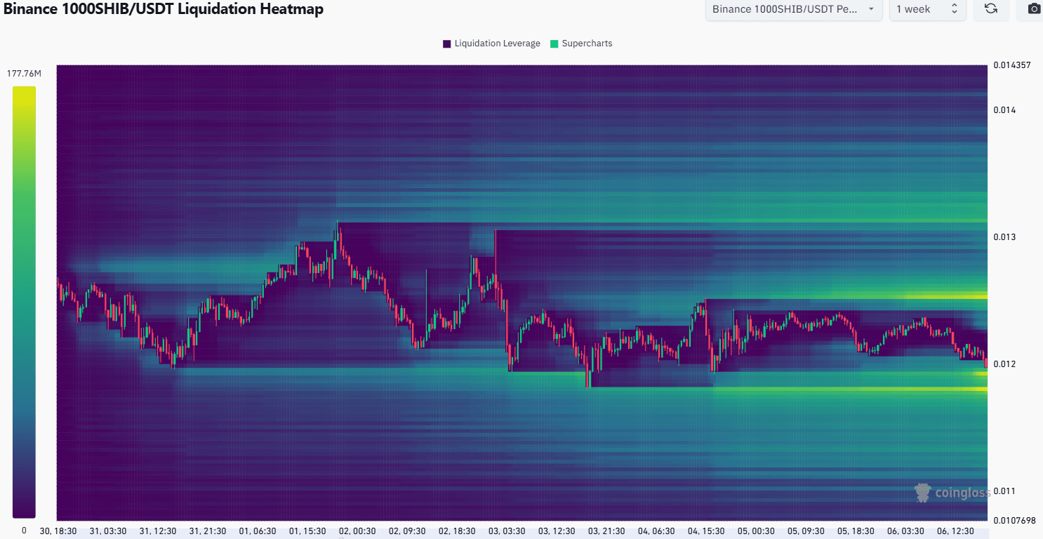 Finally, the liquidation heatmap of the past week outlined the range formation, roughly. The liquidity pockets to watch would be $0.0000119 and $0.0000118, as well as $0.0000125 marking the local highs.