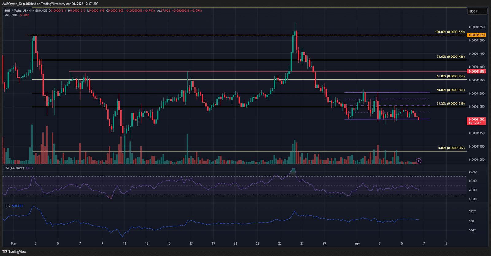 This did not come to pass, however. Instead, the $0.0000125-level formed a short-term resistance that the SHIB bulls have struggled to push past. This also meant that bullish conviction was low, and further losses might be imminent.