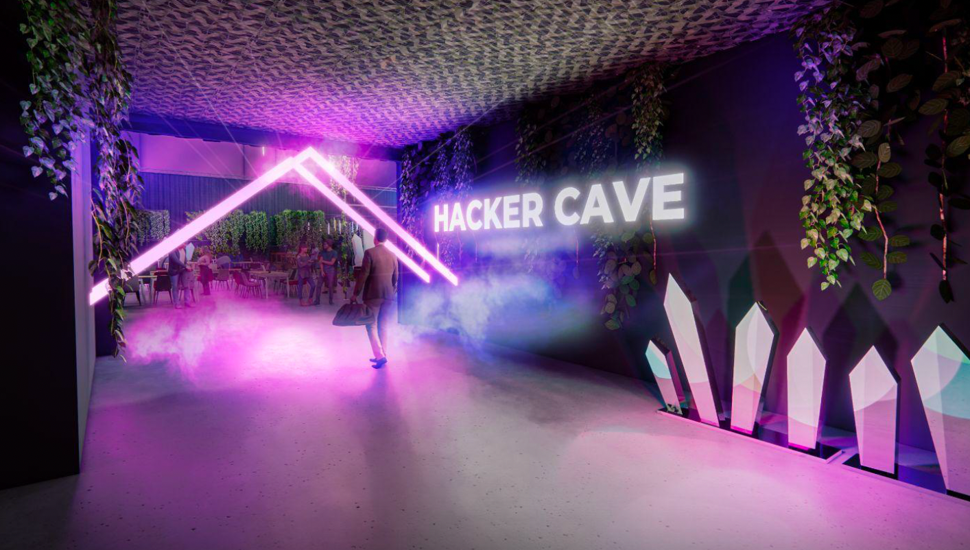 Looking for a dedicated space to test new tech and build? The Hacker Cave is equipped with cozy seating, neon cyberpunk lighting, and lush hanging plants. This space will have you in the right mindset to hack on new ideas.