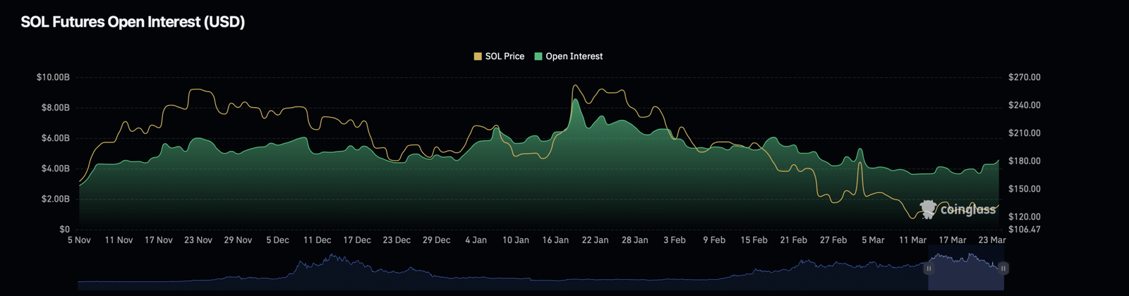 At the same time, Coinglass data revealed that more traders are betting on Solana’s future price. The total money in Solana Futures is now $5.25 billion, up 11.01%. This means that more people are taking risks with leveraged trades.