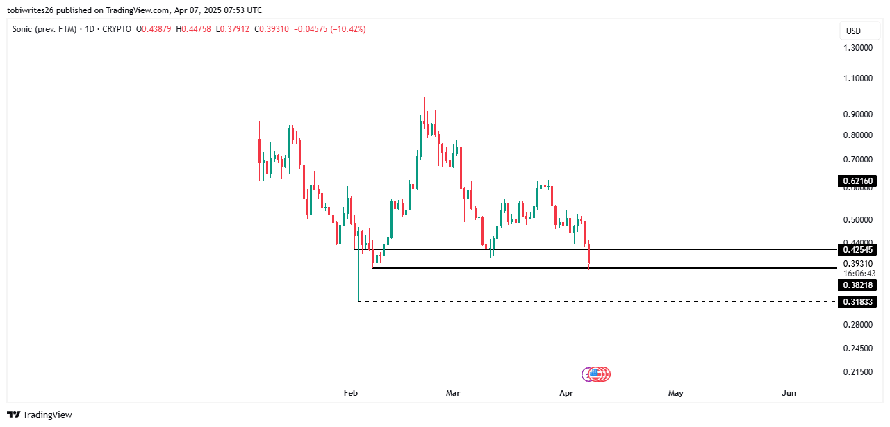 Sonic’s total value locked (TVL) has continued to drop too. TVL puts a valuation on the applications relying on a blockchain. At the time of writing, Sonic’s TVL had fallen from a high of $1.078 billion to $995.95 million – Losing approximately $82 million as market participants continued to sell.
