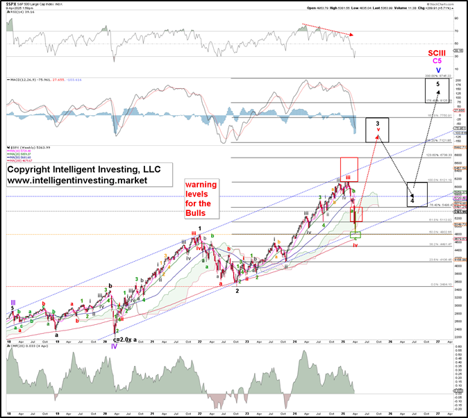 “… the response to “Liberation Day” suggests that the green W-c of the red W-iv, ideally at $ 5,140 ± 20 when assuming a standard Fib-based impulse lower, should now be underway. This target zone is close to the ideal level of $ 5,116.”