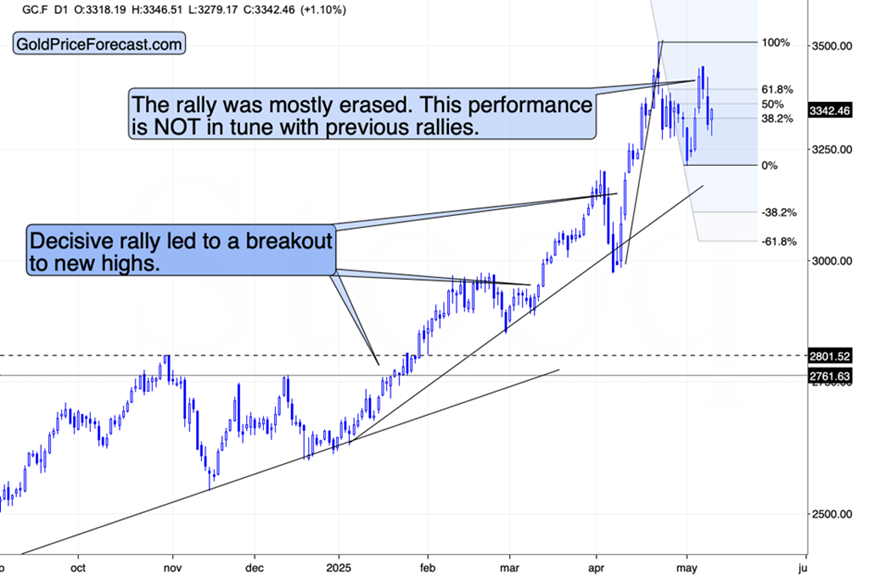 What IS of consequence is that gold’s recent price performance is clearly different from what we saw earlier this year, when gold was approaching its previous highs. The rally was temporary, just like I had warned.