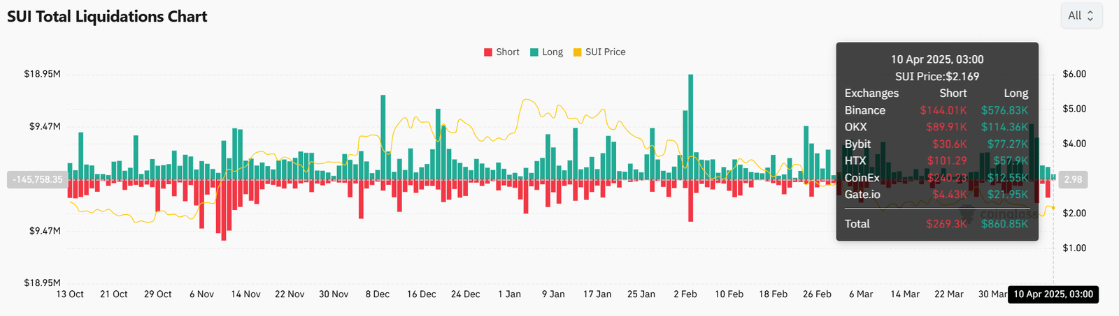 Over the last 24 hours, Sui saw $860.6k in long liquidations, compared to just $269.3k in shorts. This imbalance suggested that overleveraged bulls were flushed out, especially on major exchanges like Binance and OKX.