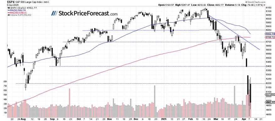 The S&P 500 extends its wild swings following the tariff-induced sell-off, as we can see on the daily chart.