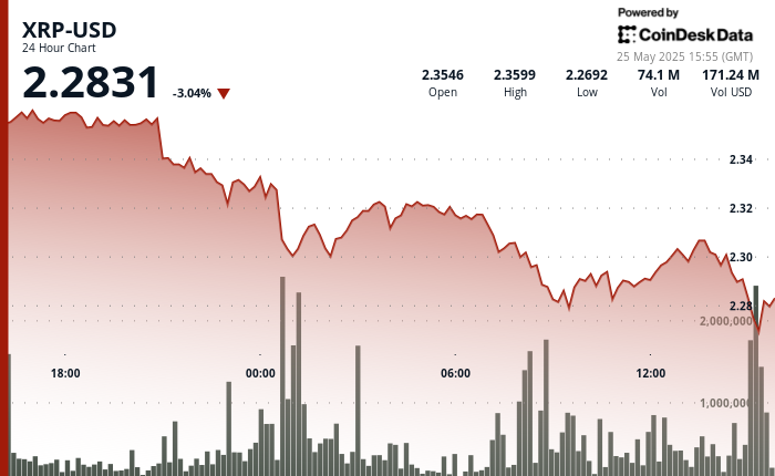 - XRP underwent a notable 3.46% correction over the 24-hour period, with price declining from $2.361 to $2.303, creating an overall range of $0.084 (3.57%).