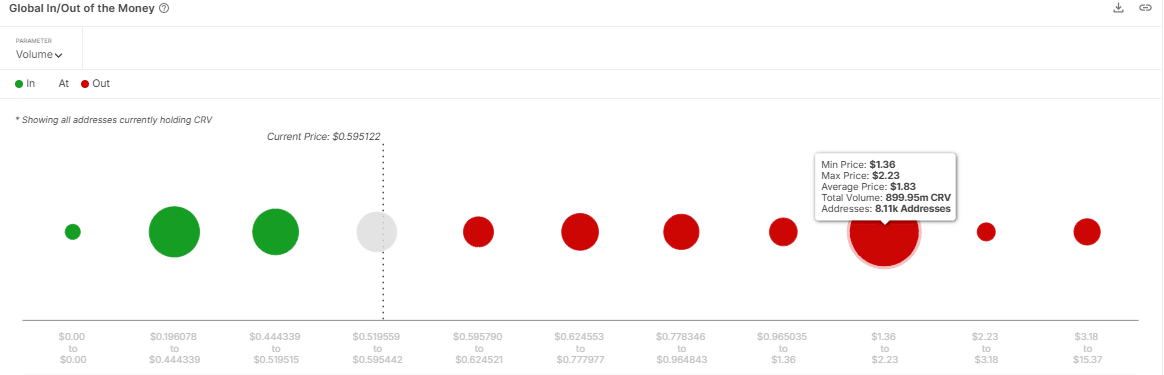 At the time of writing, the IOMAP highlighted no strong resistance until $1.83. At that level, roughly 899.95 million CRV sell orders may exist.