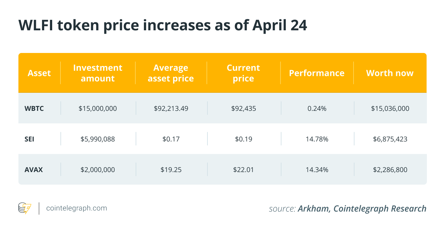 Overall, WLFI’s holdings in WBTC, SEI and AVAX have been performing most successfully.