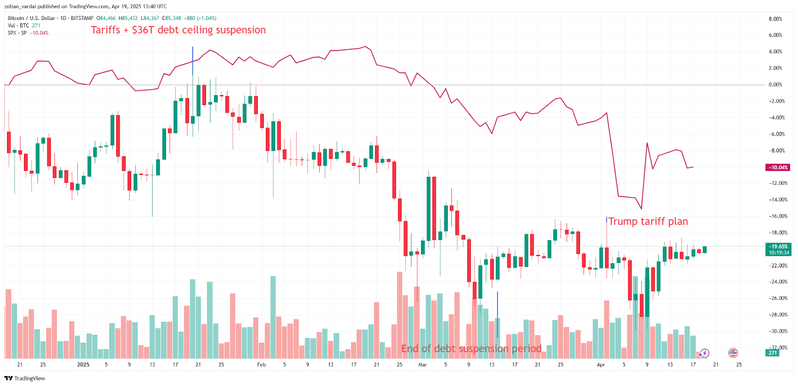 “It is important to note that funding rates remain relatively flat currently. Moreover, US markets are closed as we have a long weekend for Easter, so volatility could be suppressed barring headlines from the White House.”
