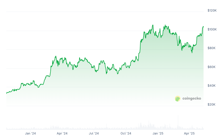 Bitcoin traded at $104,407 at the time of publication, slightly down from a historic high above $106,000 posted on Dec. 17, 2024.