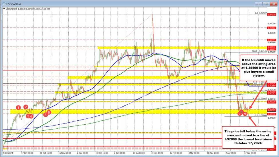 The break took the pair to a new low at 1.37808, marking the lowest level since October 17, 2024. However, that downside extension ran out of steam, and the pair has since rebounded, climbing back into the swing zone.