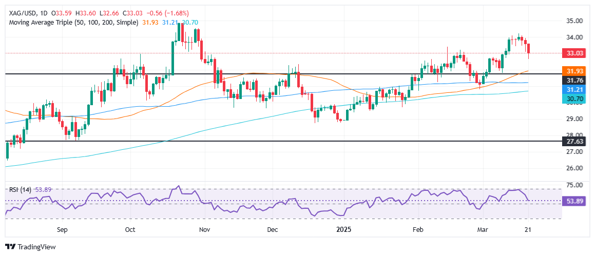 On the downside, the following key support level is the 50-day Simple Moving Average (SMA) at $31.91, followed by the 100-day SMA at $31.19. At the same time, if buyers push the grey metal above the March 20-day low of $33.10, expect a late rally toward the $33.50 mark.