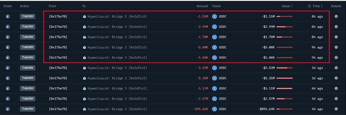 On-chain data indicates that XRP whales are positioning for continued upward momentum, with expectations of new price highs by the end of the week. A notable transaction involved a large wallet depositing $5.84 million in USDC tokens on the HyperLiquid platform to open a long position on XRP with 2x leverage.