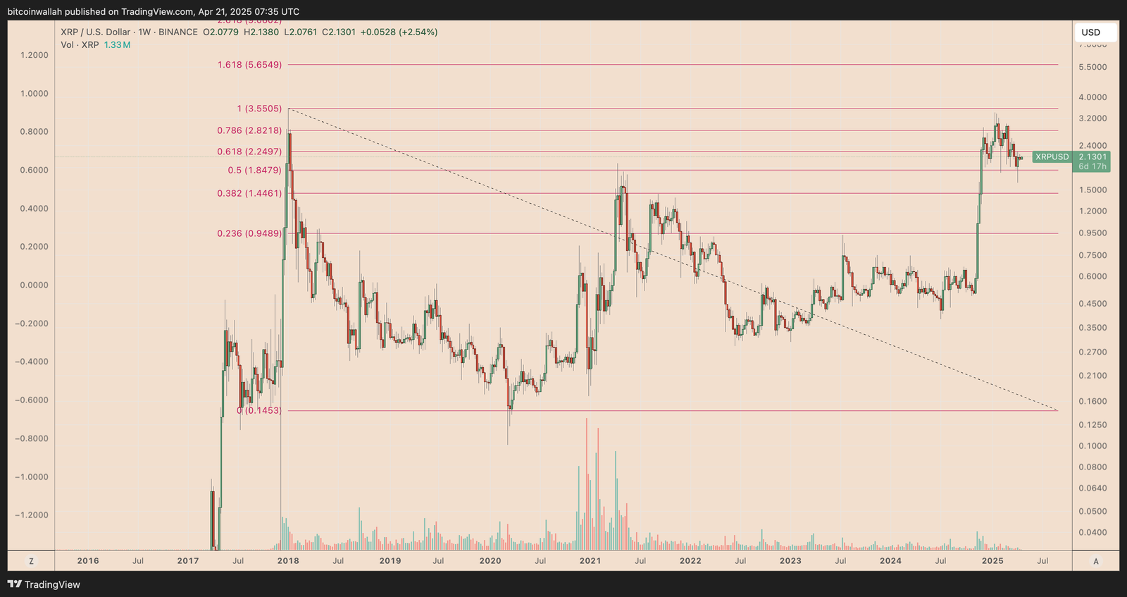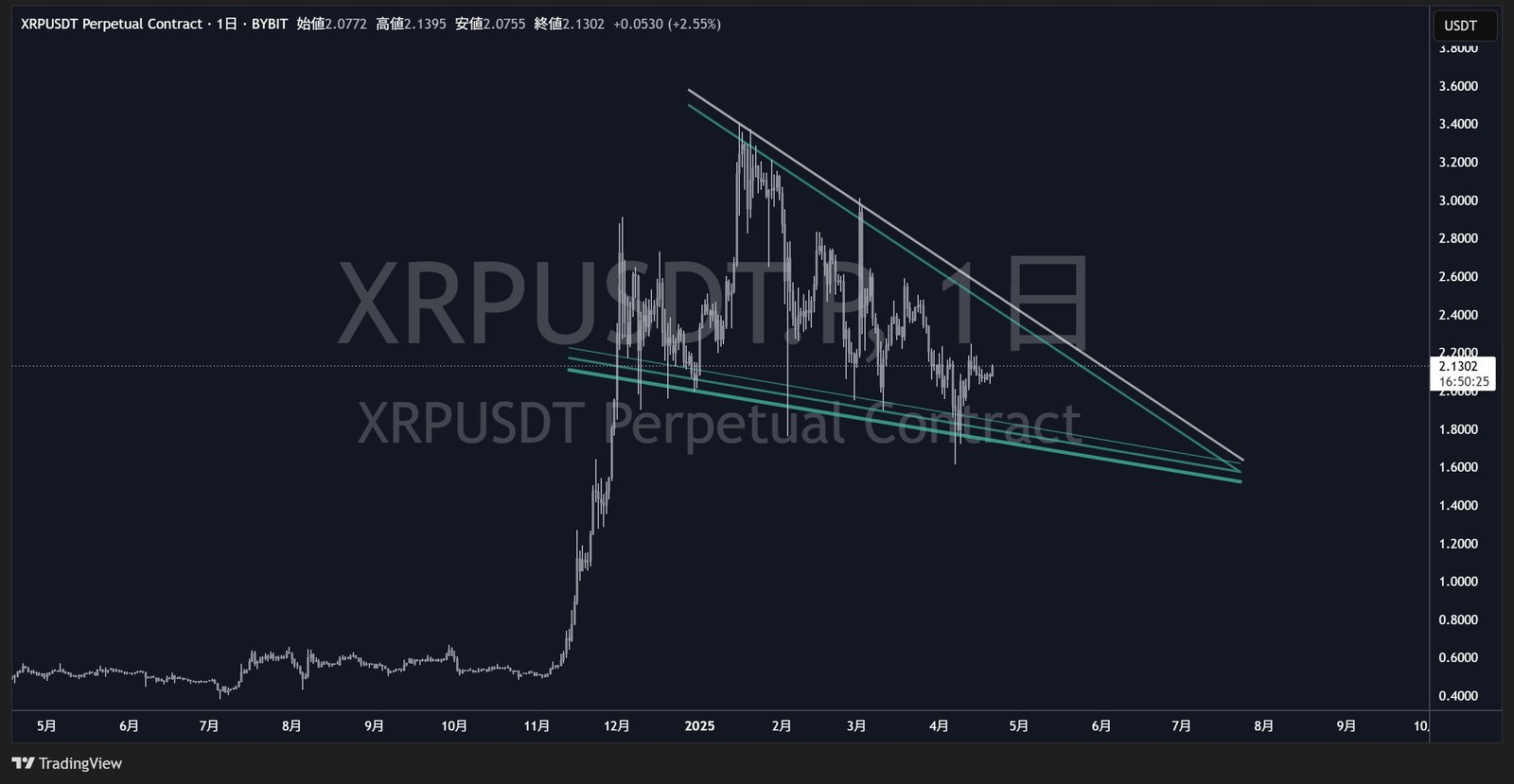 As of April 21, XRP is attempting to break above the descending “Creek” trendline.
