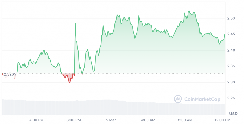 Throughout the past 12 months, the price of Ripple’s XRP has increased by 278%. The asset was priced at a low of $0.3911 during the beginning of 2024, but in no time, XRP surged to a high of $3.39. At press time, the altcoin was trading at $2.44 with a 5.37% rise over the past 24 hours.